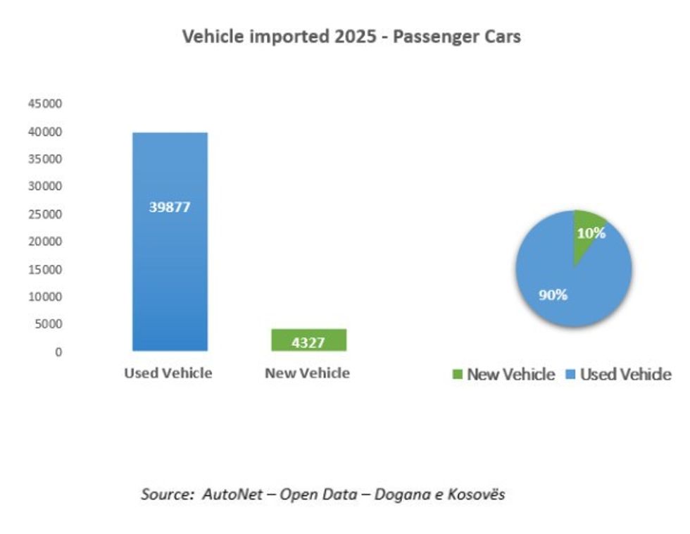 Bazuar në të dhënat zyrtare të Open Data – Dogana e Kosovës, të analizuara dhe përpunuara nga platforma online AutoNet, në vitin 2025 janë importuar 44,207 vetura, në raport me 37, 954 të sjellura në vitin paraprak.